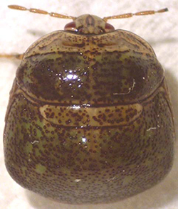No sooner had I showed the container to the biologists, than Wilson was whisked from his roost, suddenly sealed in a tiny plastic bag and subjected to intense scrutiny under the bright hot light of a high-powered microscope. After several minutes of hushed conversation, rapid keystrokes and flipping insect field guide pages, the humans all unanimously pronounced Wilson a Kudzu Bug!