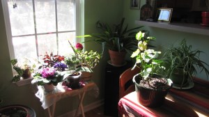 For the past month I’ve been living in a cozy Asheville condo with mountain views, a temporary house sitting gig I arranged in order to get my bearings and learn more about where I want to live permanently – and most importantly to job search. It’s very quiet here, but I’m surrounded by plant life: dozens of orchids, geraniums, African violets, Buddha’s curls, succulents and bromeliads have been left in my care.
