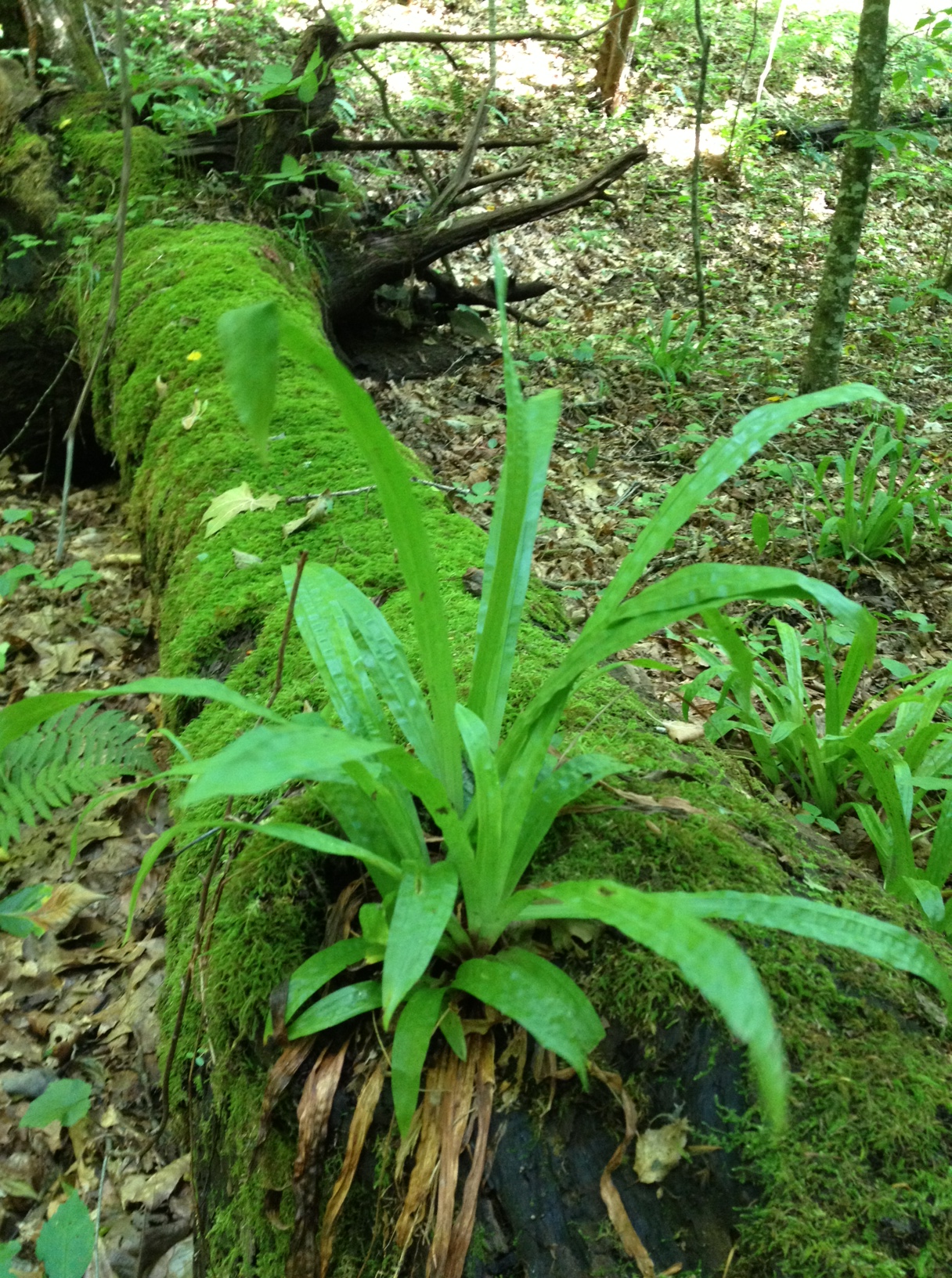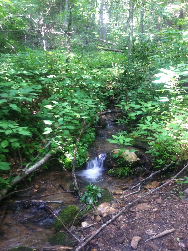Flora of note: sycamore, beech, hemlock, mountain laurel, rhododendron, several fern and moss varieties, oyster mushrooms, red brick top mushrooms, Heal All or Prunella Vulgaris