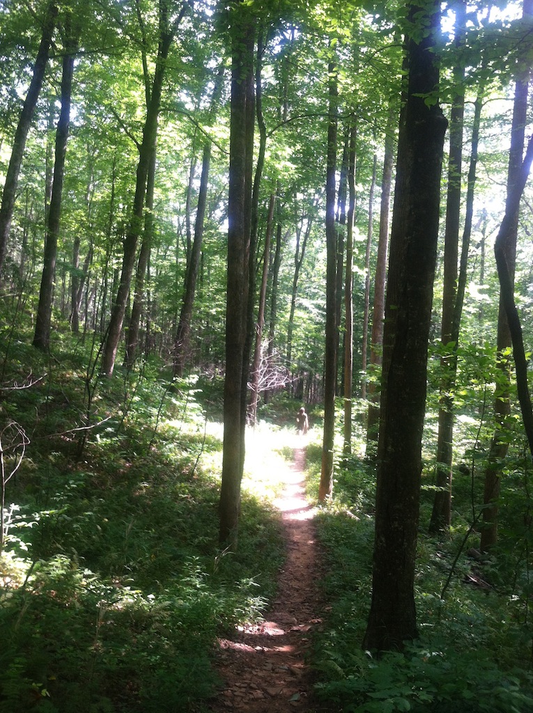 One of the mild disappointments of hiking the Coon Tree Loop in summer is that after one has ascended approximately 1,000 feet, the reward of a sweeping view of the landscape below is never delivered. The upper part of the trail is a wooded ridge, whose overlooks of Chestnut Knob and Black Mountain are only easily visible during winter.