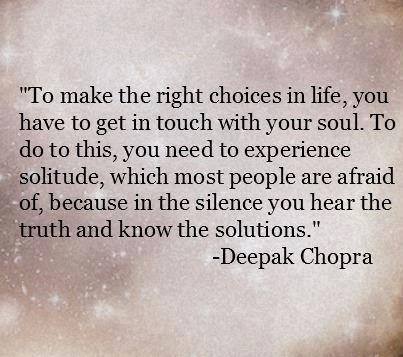 “To make the right choices in life, you have to get in touch with your soul. To do this, you need to experience solitude, which most people are afraid of, because in the silence you hear the truth and know the solutions.” ~Deepak Chopra
